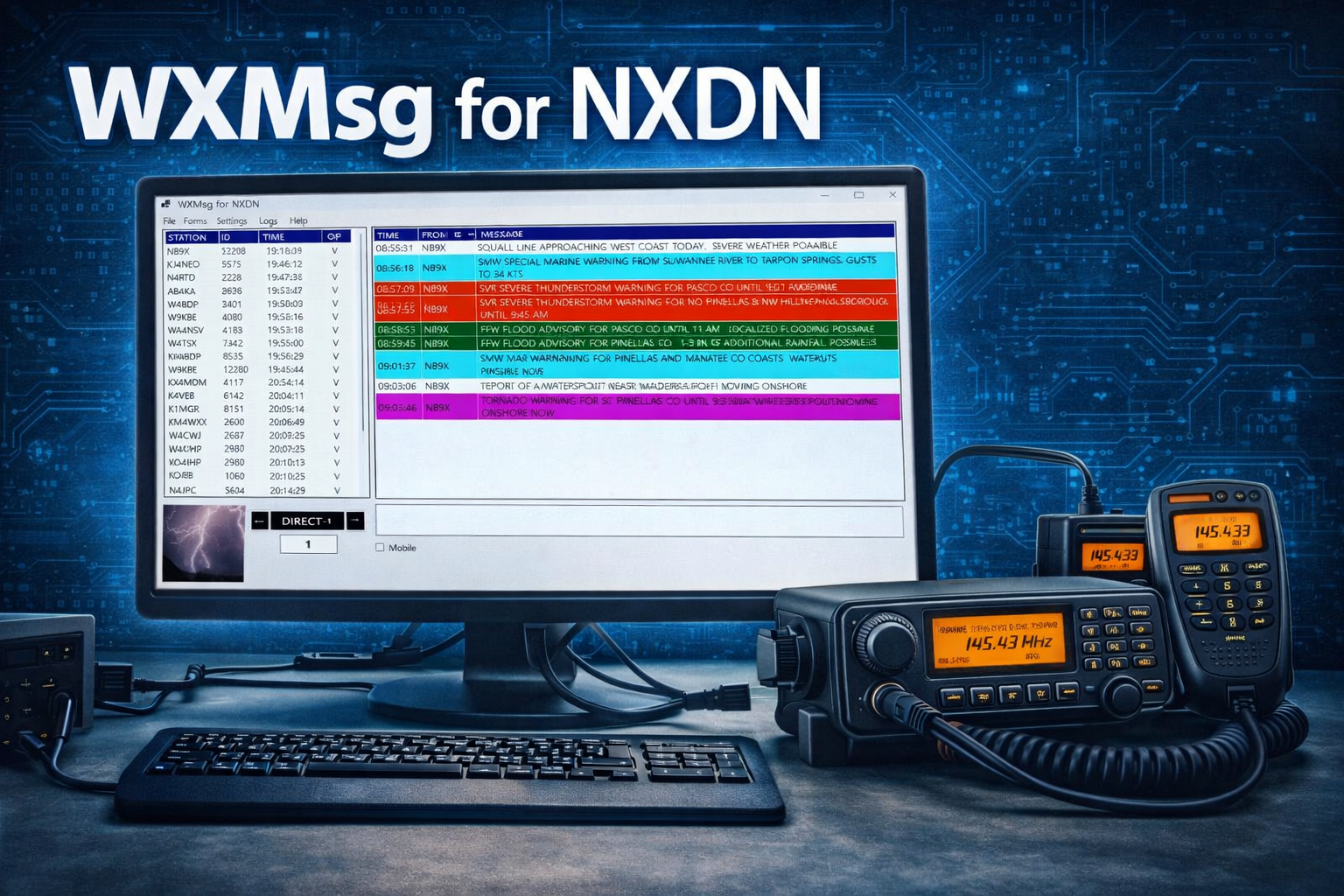 | WXMsg is a software application for NXDN. This application takes advantage of the digital power of NXDN. WXMsg for NXDN is a focused way of communicating via text, rather than by voice.If you’d like to learn more about how WXMsg works, you’ll want to check out the TECHCON 2024 video (link on the left) where Paul Toth, NB9X, details the functionality of how this software application works.It’s important to note that WXMsg is being continually enhanced and more features have been added since this video has taken place.On March 12, 2026, a NEW VERSION of WXMsg, 2.0.1.2, has been released, and adds features such as dynamic talkgroups as well as enhancements to severe weather reporting.Click here for the WXMsg2 Help fileThe WXMsg2 payload is a zipped file. Once you have DOWNLOADED it, create the folder C:\WXMsg2 on your computer and extract the WXMsg2 files into that folder.